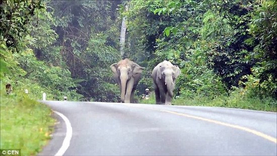 泰國一個國家公園里,發生摩托遭大象圍攻的事件,剛好被經過的一輛汽車的行車記錄儀拍攝下整個過程,地點就是在Khao Yai 國家公園,大象圍攻摩托車可能是大象對摩托車發出的低頻聲音煩躁。