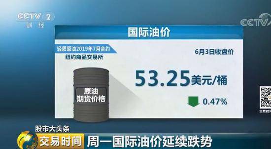 油價在周一再次下跌,7月交割的美國輕質原油WTI收盤在每桶53.25美元。