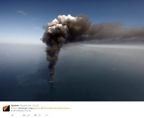俄羅斯媒體報道“庫茲涅佐夫”冒黑煙。