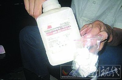 傳說中的假雞蛋終于要開始制造了。工作人員先在一個盛滿水的燒杯里加入海藻酸鈉,讓記者不停地攪拌。隨后,他又在一個塑料盆里倒入一些白色粉末。把調成蛋黃顏色的海藻酸鈉倒入半個乒乓球中,在氯化鈣水中來回晃動。很快,海藻酸納就變成了一個球形。然后,他用無色的海藻酸鈉溶液包裹住一個剛才做好的蛋黃,在水中繼續晃動。幾分鐘后,一個沒有殼的假雞蛋就出現在我們面前,和剝了皮的松花蛋倒有幾分相似。接下來的步驟,就是完成假雞蛋制作的最后一個環節,“給雞蛋包殼”。工作人員聲稱:“這是氧化鈣、硬脂酸、食用石蠟三種都放在里頭。這放完了就不要動了,就不管它了。”