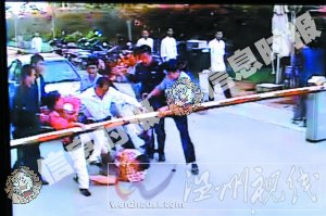 小區(qū)監(jiān)控?cái)z像頭拍攝的視頻顯示,多名保安參與毆打張芊的父親。