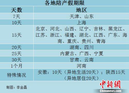 河南、甘肅、云南三地的男性享受的陪產假期限最長。根據新版計生條例,河南的護理假為1個月,甘肅和云南的護理假為30天。