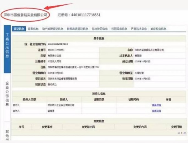 藍瘦香菇被搶注:近期爆紅的網絡熱詞“藍瘦香菇”被搶注,10月13日,深圳市藍瘦香菇實業有限公司在深圳市福田區注冊成立,法人代表是賴翠云,注冊資本是50萬元。