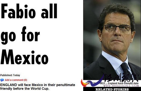 由于在南非世界杯,英格蘭被分到跟美國(guó)、阿爾及利亞和斯洛文尼亞同組,“三獅軍團(tuán)”的首戰(zhàn)就是對(duì)陣美國(guó),為了得到更多跟美洲球隊(duì)的交鋒經(jīng)驗(yàn),卡佩羅希望可以在世界杯開(kāi)始前跟墨西哥踢一場(chǎng)熱身賽。