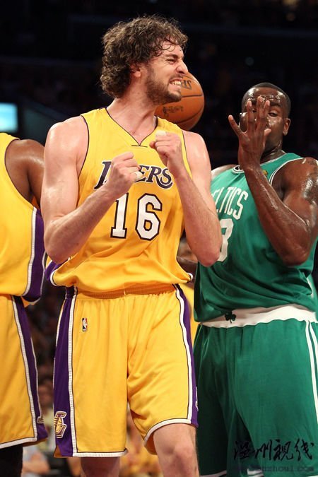 開場后加索爾更多是在高位做策應,湖人隊這邊,全隊攻擊性都比較強。底線接球,一個晃動之后強殺籃下,險打2+1,球刷框而出,加索爾造犯規2罰1中。此后不久他又蓋下了帕金斯的2次進攻。5分鐘左右,湖人隊打反擊,科比搶斷之后,傳球中路,加索爾接球后長驅直入跨大步上籃得分,湖人取得18-12開局。5分30秒,凱爾特人換上華萊士,加索爾在一次協防后漏掉KG讓他中投命中。