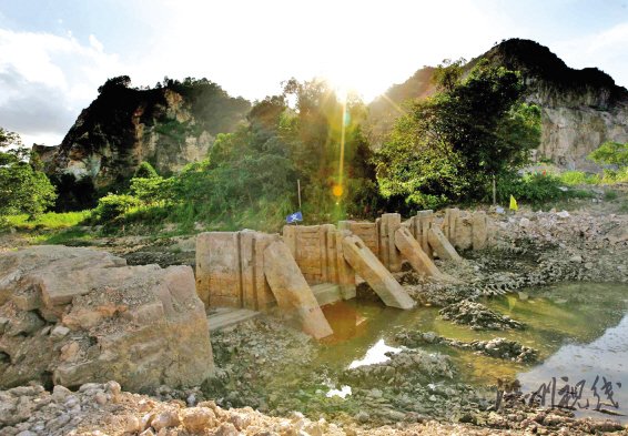 在整個古閘的北邊,西側兩個孔的堰壩與其他三個孔不同。一條條石板整齊地鋪成了一個斜坡,據專家介紹,這是供落潮時船只通過閘門用的;而在古閘南邊,其中一孔的堰壩鋪有混凝土,這種建材在解放后才在溫州開始出現,因此推測,古閘在解放后應有過修繕。此外,在清理閘墩時,他們還發現陡門東面第一個閘墩的砂巖成色比其他閘墩上的都更深,由此推斷這個孔是后來加筑的。