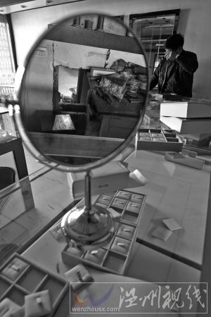 出事的金店名叫錫安珠寶金行,位于甌海區麗岙鎮麗岙南路一商場內,共有2間店面,面朝104國道。珠寶被盜后,金店就停業了,前門“鐵將軍”把門,看不出什么異樣。在金店老板林先生帶領下,記者進入店內,原先擺放珠寶、金銀首飾的柜臺,大都已空蕩蕩了,柜臺上零亂地放著數十個空的首飾盒。林先生說,他家金店是該鎮最早的金店,由于麗岙是著名的僑鄉,每逢圣誕節期間,生意非常好,為此店里剛進了不少貨。“小偷把值錢的都偷走了。”林先生說,被偷走的都是黃金、白金首飾和鉆石珠寶,如24K金的黃金首飾有近1公斤,價值20多萬元,40多個鑲有南非鉆石的飾品,價值40多萬元,加上白金等其他貴重物品,總價值大約125萬元。