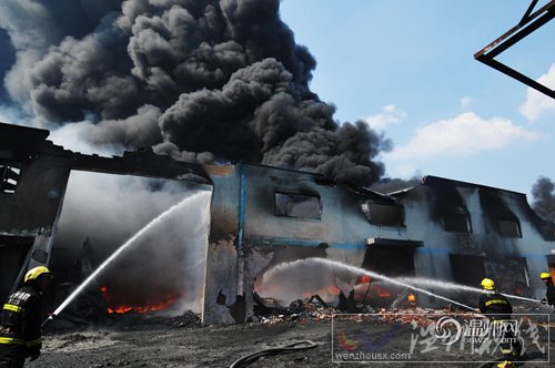 靈溪火災著火建筑為單層大框架鋼結構塑料編制廠,現場火光沖天、濃煙滾滾,常人根本無法靠近。消防戰士拉著水槍靠前壓制火勢,同時從多個方向堵截火勢。上午9時許,火勢得到初步控制;下午16時許,大火被基本撲滅。此次火災過火面積約1900余平方米,無人員傷亡。