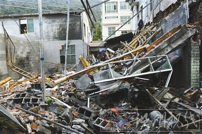 鹿城區(qū)藤橋鎮(zhèn)戴宅村前大岙巷自然村爆炸事故現(xiàn)場