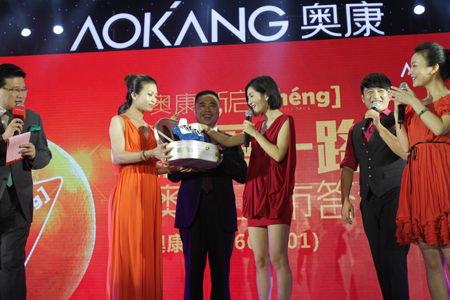 奧康水晶鞋送謝娜:5月5日,“感恩一路有你”奧康國際答謝酒會上送謝娜水晶鞋