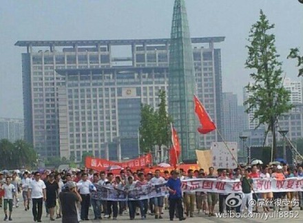 今日上午,溫州保釣人士齊聚世紀廣場舉行示威游行