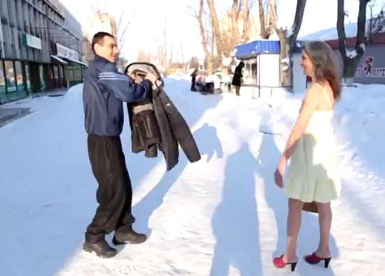 少女逆天穿短袖:12月8日,俄羅斯《地鐵報(bào)》報(bào)道,最近俄羅斯陶里亞蒂的氣溫已經(jīng)達(dá)到零下14攝氏度,有一位少女逆天穿短袖短裙,不怕冷的少女原來是一位54歲大媽。