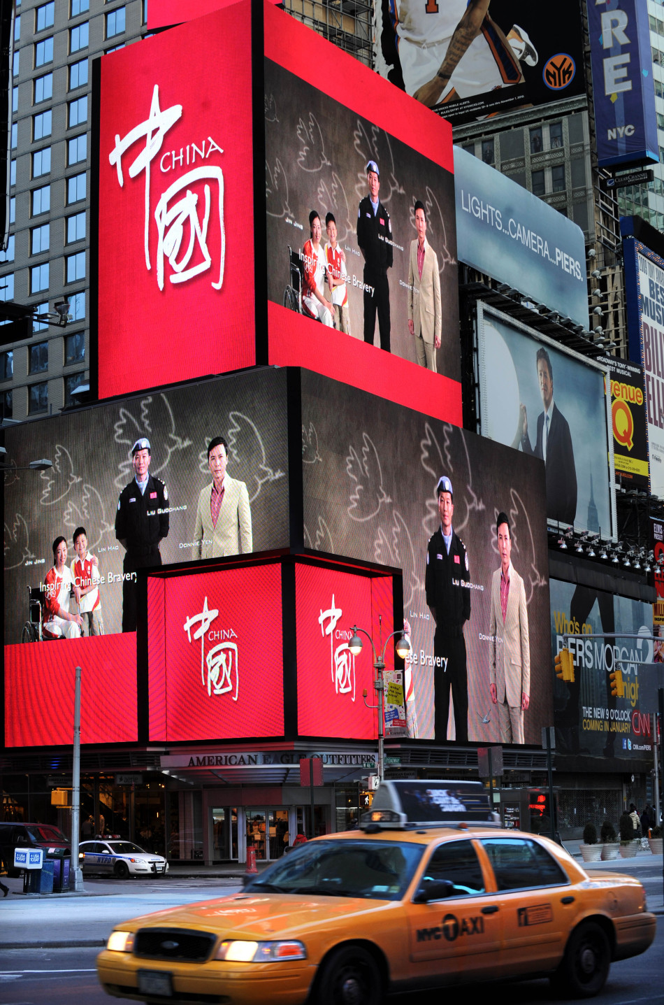 1月17日,中國國家形象片,國家形象宣傳片在紐約時報廣場電子屏播出,美國紐約時報廣場的電子顯示屏正在播出《中國國家形象片——人物篇》。 當(dāng)日,《中國國家形象片——人物篇》開始在紐約時報廣場大型電子顯示屏上以每小時15次、每天共300次的頻率播出。至2月14日,中國國家形象片共計將播放8400次?!吨袊鴩倚蜗笃宋锲分邪藯罾麄?、姚明等各領(lǐng)域優(yōu)秀代表以及普通百姓,旨在向全世界展示立體的中國。 新華社記者申宏攝