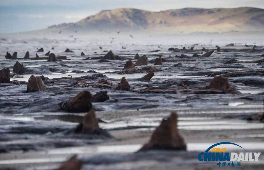 夾帶雨水沖刷出英國威爾士中部錫尓迪金郡的一個小村莊5000年前森林遺址,報道稱這片被砍伐的森林樹樁保存完好,包括橡樹、松樹等多種樹木,英國5000年前的古人破壞森林。