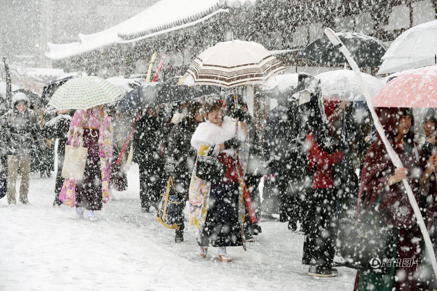 好大:2017年1月12日開始,日本多地遭遇今冬最強冷空氣襲擊,多地開始下暴雪積雪最厚達2米,凍死小鬼子,奇怪的是小鬼子并不怕冷。日本氣象廳繼續發布暴雪警報稱,此次寒潮來勢兇猛,與往年同水平相比也堪稱“頂級寒流”,日本已迎來今年“最冷周末”。在日本京都著名古跡三十三間堂,日本女孩身穿傳統和服冒雪游園。