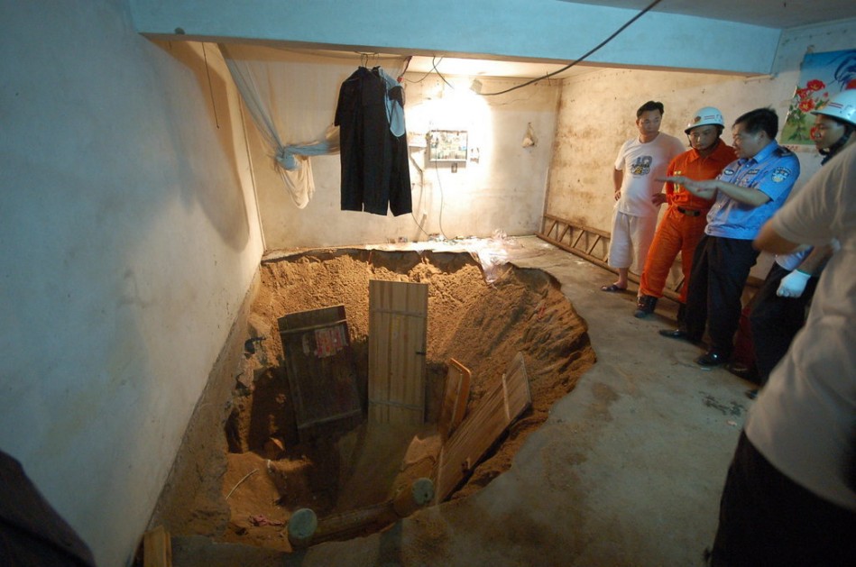 9月4日廣東五華縣岐嶺鎮(zhèn)三多齊村一幢三層小樓地下一房間水泥地板突然發(fā)生塌陷,一對獨居的古稀夫妻在睡夢中連人帶床陷入深坑中被流沙吞噬失蹤。
