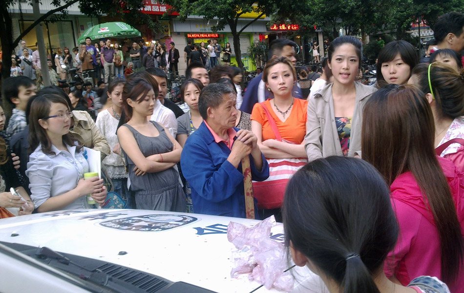 川美女圍堵打人城管,5月15日凌晨,網(wǎng)友“我是你牛牛姐”發(fā)微博稱,14日成都鹽市口有城管打了一位賣楊梅的老大爺,隨后城管被眾多群眾圍觀聲討。一位身穿藍(lán)色布衣的大爺拄著扁擔(dān)站在一輛綜合執(zhí)法車前,老人身旁還有多位川美女圍堵打人城管一起擋在執(zhí)法車前,遠(yuǎn)處也有不少人圍觀。