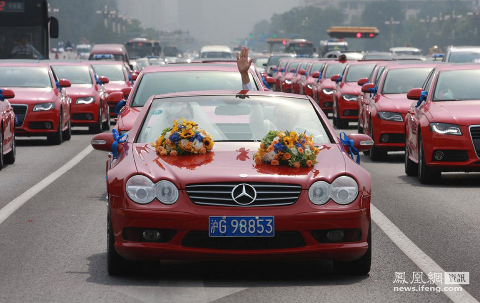 長安街最牛婚車隊 35輛紅色奧迪A4車隊 駛過長安街