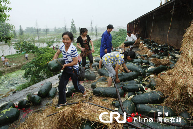 江西省南昌縣廣福鎮(zhèn)荷山村無良村民趁火打劫,貨車側(cè)翻滿車冬瓜被江西省南昌縣廣福鎮(zhèn)荷山村無良村民哄搶,2011年7月13日上午,江西,一輛牌號為贛D8126掛車在105國道南昌縣廣福鎮(zhèn)荷山村發(fā)生交通事故,車上裝載的4萬多元數(shù)十噸冬瓜側(cè)翻。沒想到附近的一些村民不僅沒有幫忙,反而開始哄搶貨物,這些可憐的人,人家遭遇交通事故,損失重大,江西省南昌縣廣福鎮(zhèn)荷山村無良村民趁火打劫,這種行為就是搶劫。