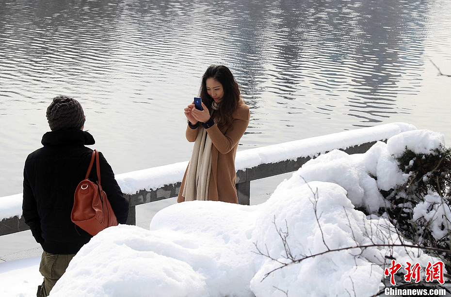 昨天的天氣預報就說昨晚至今天安徽下大雪,中央氣象臺昨天發布暴雪預警。2月19日,安徽淮河以南下暴雪,積雪最深有22厘米。安徽暴雪給交通帶來很大的影響,京滬高鐵部分列車停運和晚點,但市民很高興,紛紛在雪景中留影。