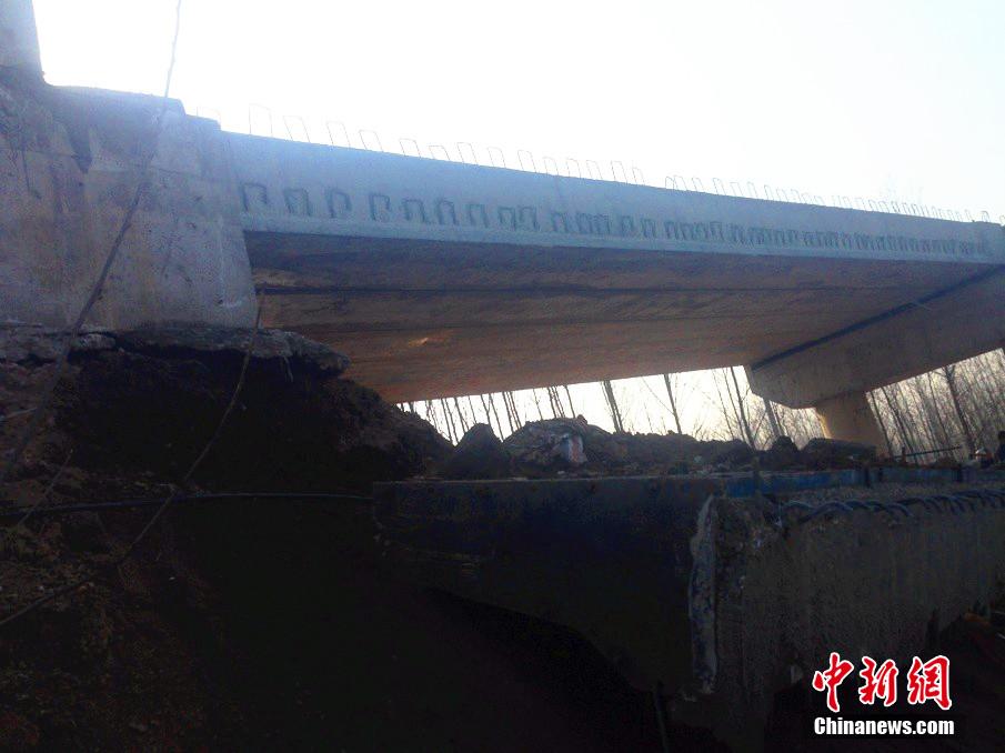 公跨鐵大橋坍塌:2014年3月27日上午,在寧西鐵路復線