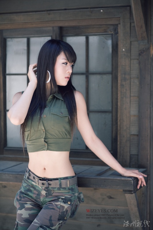 韓國美女-Hwang Mi Hee(黃美姬)Pants褲裝寫真,Gunslinger Girl神槍少女。一個頂級韓國美女玩槍寫真,Hwang Mi Hee(黃美姬)迷彩服軍裝也露出肚子,就是一種秀,明擺著是借軍裝擺性感。
