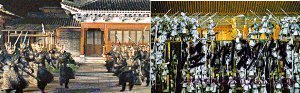 宮庭門外的陣勢有復制《黃金甲》(右)之嫌