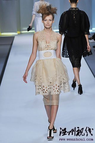 日前,劉亦菲身穿一件淡黃色的層疊漏眼禮服出席某文化旅游節推介會,禮服本身倒沒什么,但她腰間那條有個黑圈大洞的寬腰封卻引來了不少網友的注意。最開始只是有人表示很“雷”,隨后,便有深諳時尚的網友發表博文指出:劉亦菲當天的“漏眼裝”和意大利著名時裝品牌Fendi的2009年春夏新裝如出一轍,“只是在質量和設計上大打折扣,最直觀的區別就是布料,正版比較厚重,而劉亦菲的很單薄,感覺廉價粗糙”。對比兩張圖片,相似度確實達到90%以上,幾乎是用Fendi的一條裙子和另一款腰封搭配出來的。