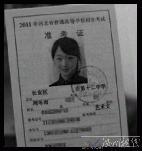 網(wǎng)上爆出的周冬雨準考證圖片(圖片來源:網(wǎng)絡)