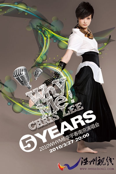 3月1日,天娛旗下藝人李宇春以新造型出鏡拍攝的 “Why Me演唱會”海報終于曝光。“Why Me”作為李宇春的個人音樂品牌已在業(yè)內打下良好口碑。據(jù)悉,演唱會現(xiàn)已進入了緊張的籌備階段,“2010 Why Me李宇春南京演唱會”終于在眾人的期待中將于2010年3月27日在南京拉開了序幕。