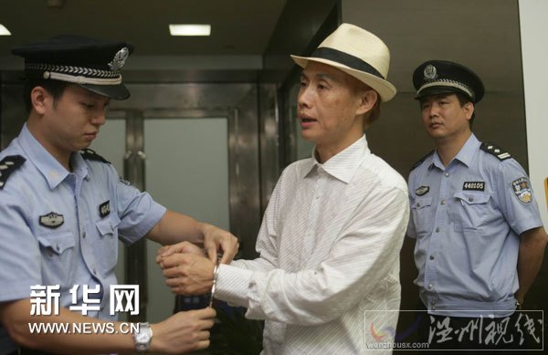 10月15日,鄧建國(guó)被捕 在廣州白云機(jī)場(chǎng)被廣州市中級(jí)人民法院的辦案人員帶走。新華社發(fā)