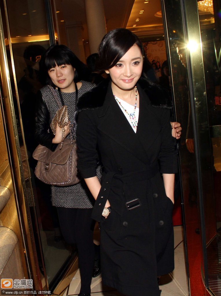 楊冪短裙裹大衣圖片 無奈楊冪短裙太短玉腿受凍